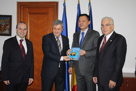 E.S Daulet Batrashev-Ambasadorul Kazahstanului a fost intampinat de un comitet condus de rectorul Universitatii din Targoviste-Prof. Dr. Calin Oros si de Vice-Cancelarul-Gabriela Teodorescu si de liderii institutelor de cercetare si a institutiilor politice si de cercetare istorica din Romania.