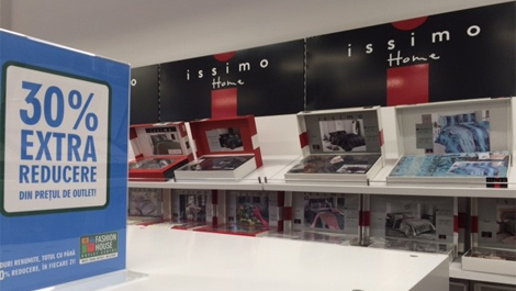 Avand peste 200 magazine de lux in Turcia si parteneriate cu retaileri din 15 tari, Issimo Home este un renumit producator de textile premium pentru baie si casa. Compania a inchiriat un spatiu de 78 m.p. si va furniza clientilor outlet-ului o gama larga de accesorii, de la lenjerii de pat, la prosoape, halate de baie, paturi si perdele.