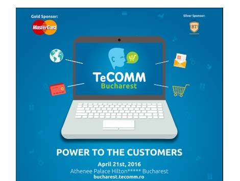 Power to the customers este conceptul editiei aVIII-a TeCOMM eCommerce Conference&Expo Bucuresti, eveniment ce va avea loc in 21 Aprilie in cadrul Athénée Palace Hilton. Aceasta editie va sublinia importanta intelegerii comportamentului consumatorului, nevoilor acestuia, fidelizarii si a modului in care business-urile online este necesar sa isi realizeze strategiile pentru ca acestia sa se intoarca pe site, convertindu-se in mod repetat.