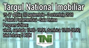Finalul lunii septembrie este marcat de doua momente importante pentru dinamica pietei imobiliare din Romania: suplimentarea fondurilor pentru Programul Prima Casa 2016 si cea mai renumita expozitie din domeniu: Targul National Imobiliar TNI – editia de toamna. Evenimentul ce are loc in perioada 30 septembrie- 2 octombrie la Palatul Parlamentului, Sala Unirea se anunta a fi unul DE SUCCES, iar din totalul de 107 standuri expozitionale, doar 2 standuri mai sunt disponibile.